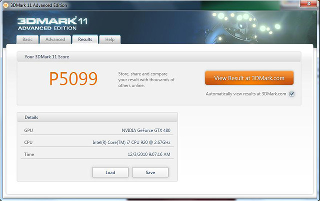 После тестирования пакет выдаёт пользователю общий балл, а также производительность по отдельным тестам. В 3DMark 11 роль старой графы CPU Score теперь выполняет Physics Score (5-й тест), на месте осталась GPU Score (первые 5 тестов) и появилась новая Combined Score (6-й тест). Также для каждого из тестов можно увидеть среднее количество кадров в секунду.