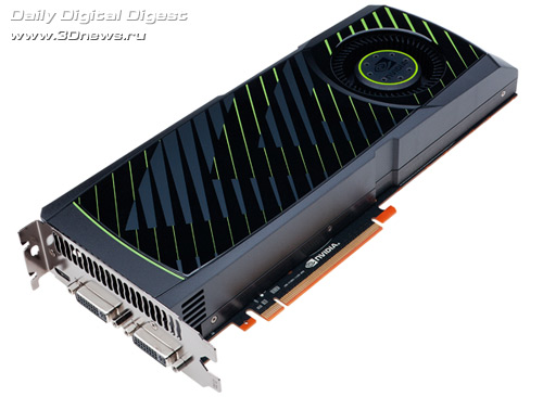 В основе дебютанта лежит 40-нм чип GF110 с 480 ядрами CUDA, 60 текстурными модулями (TMU) и 40 блоками растеризации (ROP). Ускоритель функционирует на частотах 732/1464/3800 МГц (ядро/шейдерные блоки/память).