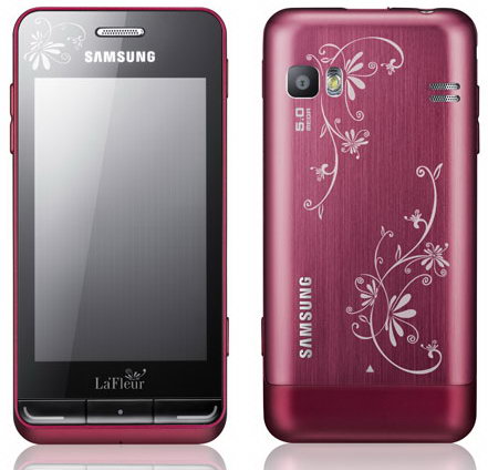 Компания Samsung презентовала дамскую коллекцию телефонов La Fleur 2011, в которую вошли четыре модели с узорами на корпусах. «Телефоны из коллекции La Fleur 2011 отличаются не только притягивающим взгляды внешним видом, но и богатым набором полезных функций», - заявляет производитель. Смартфон La Fleur Wave 723 (S7230) на bada выполнен в корпусе насыщенного темно-розового цвета, панель, закрывающая аккумуляторный отсек, сделана из металла и расписана белыми узорами. Цена телефона – 13 тыс. рублей.